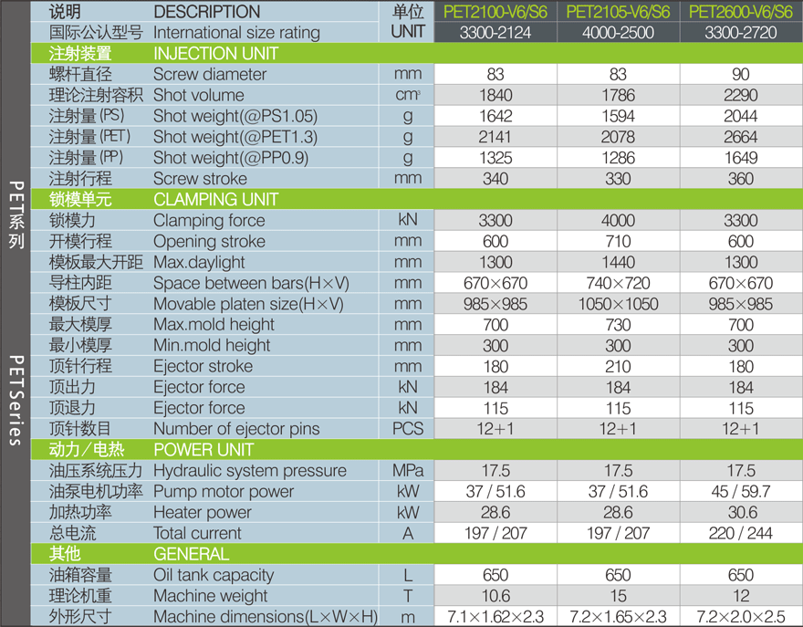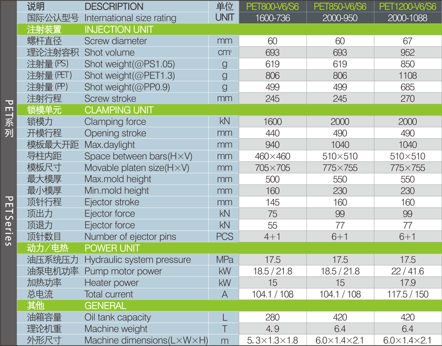 提供PET瓶坯全方位完善而成熟的解決方案,注射量從800-4500g的50多款不同規(guī)格型號(hào)PET瓶坯專(zhuān)用注塑機(jī)。