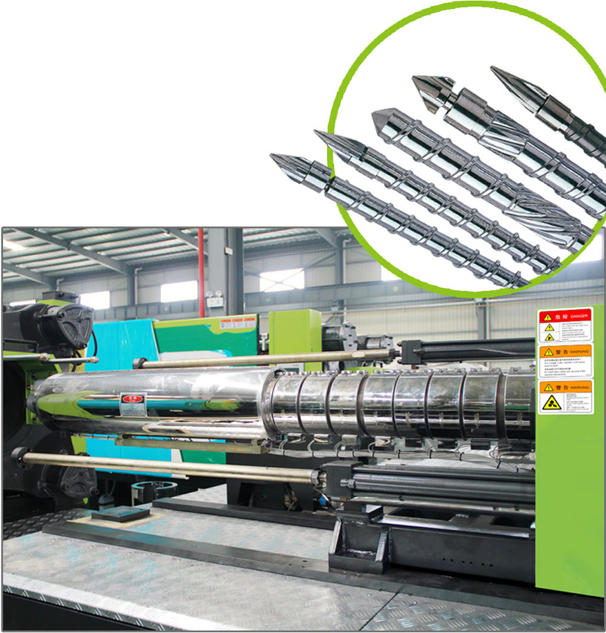 高效混煉PET專(zhuān)用螺桿,配陶瓷發(fā)熱圈,顯著提高熔膠速度和注射量,降低塑化溫度與AA值,有效改善制品的收縮問(wèn)題,提高透明度。